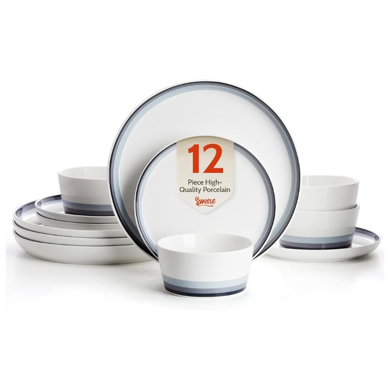 Sweese 12 Piece Dinnerware Sets for 4 - White and Blue Gradient