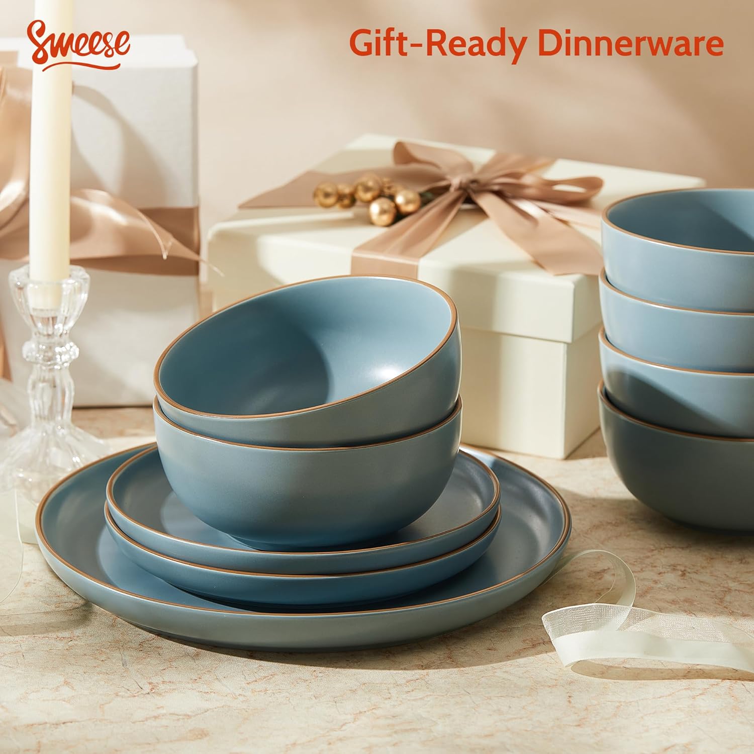 - EMBRACING EVERYDAY ELEGANCE: Sweese 18-piece kitchen plates and bowls set includes 6 × 10-inch dinner plates, 6 × 8-inch salad plates, and 6 × 20-ounce bowls—perfect as a dish set for 6. Whether you’re serving everyday family dinners or weekend gatherings, this dishware sets brings understated elegance to every meal.
