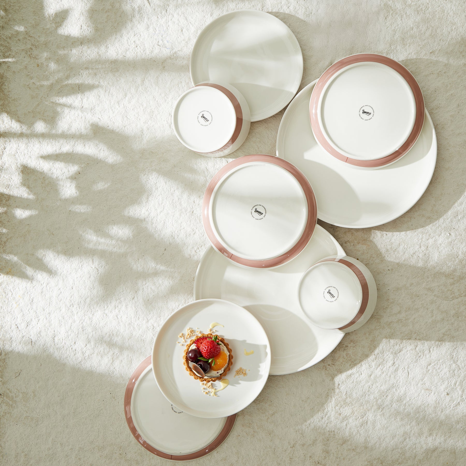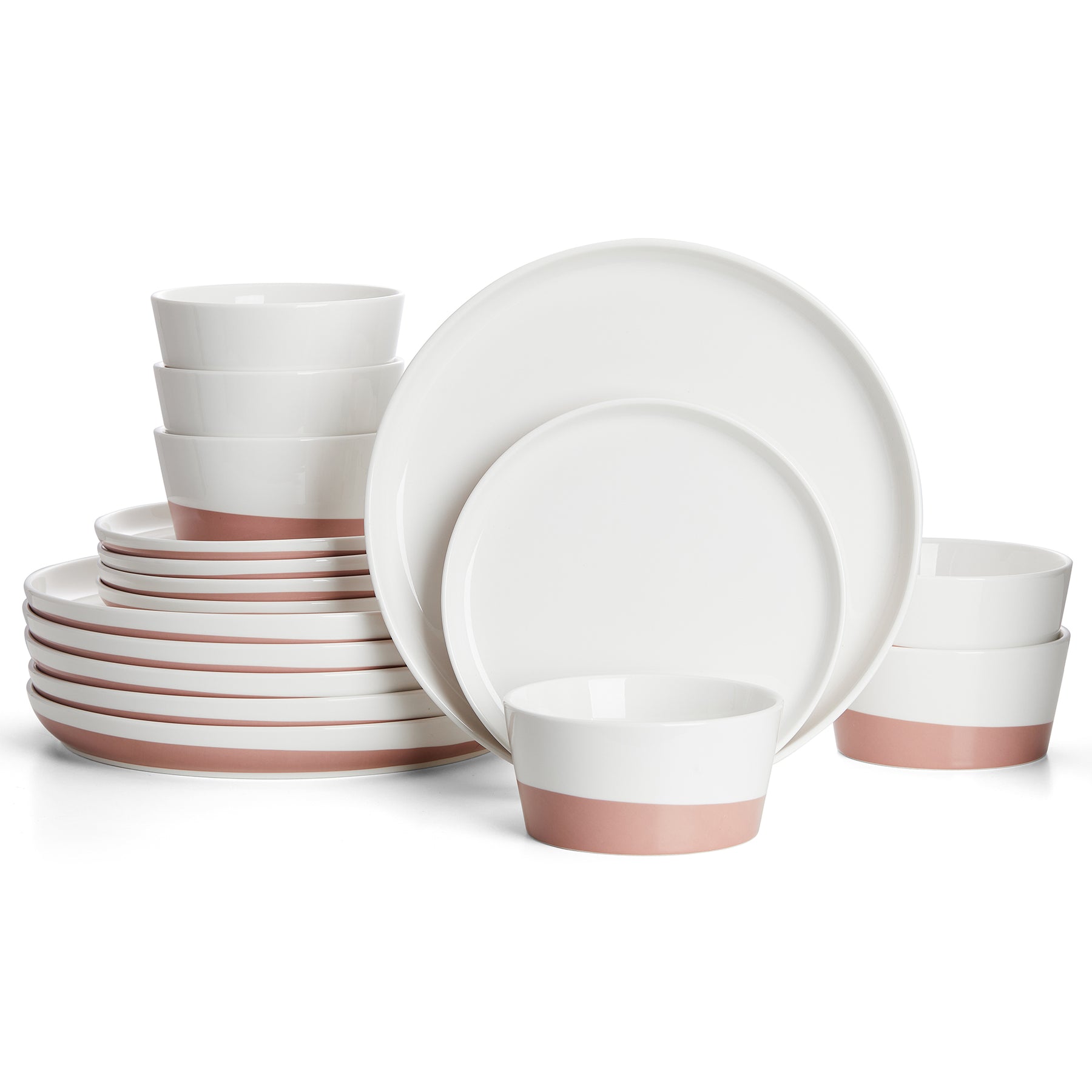 - HANDCRAFTED PINK GLAZE:Sweese dishware sets are irregular elegance in Every Rim. Each rim is meticulously hand-applied with a blush pink glaze using a firing technique that creates naturally uneven edges. Unlike mass-produced finishes, every dinnerware piece is slightly different—offering a uniquely artisanal look that turns everyday meals into a refined dining experience.