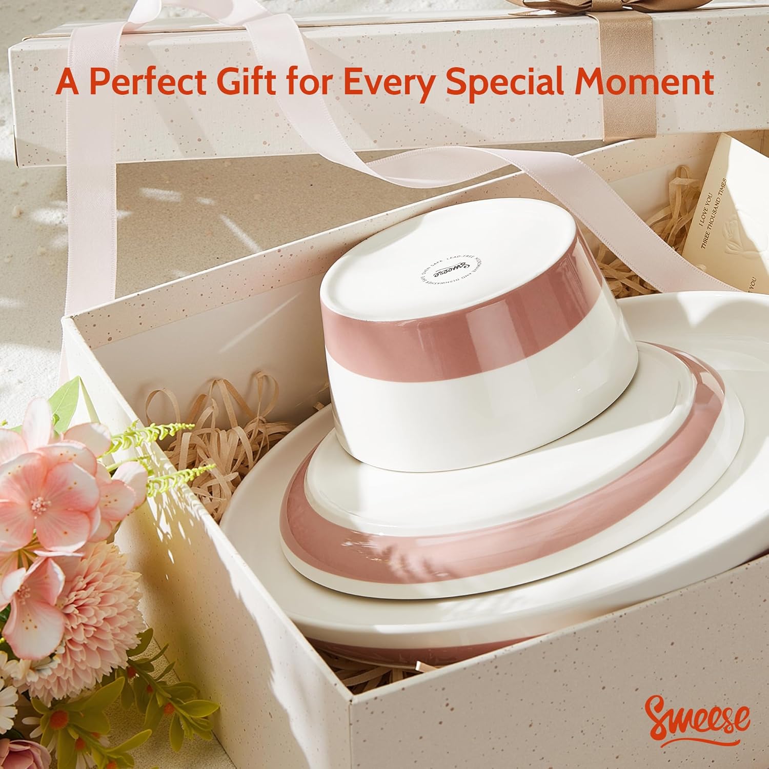 - A THOUGHTFUL GIFT & FESTIVE TABLE HIGHLIGHT:Sweese modern dinnerware set with its handcrafted blush pink-glazed rims, brings warmth and elegance to any table—perfect for festive gatherings like Thanksgiving, Christmas, Easter, or Mother’s Day. Whether for newlyweds, friends, or family, it’s a meaningful and stylish gift that adds charm to every celebration and complements seasonal décor beautifully.