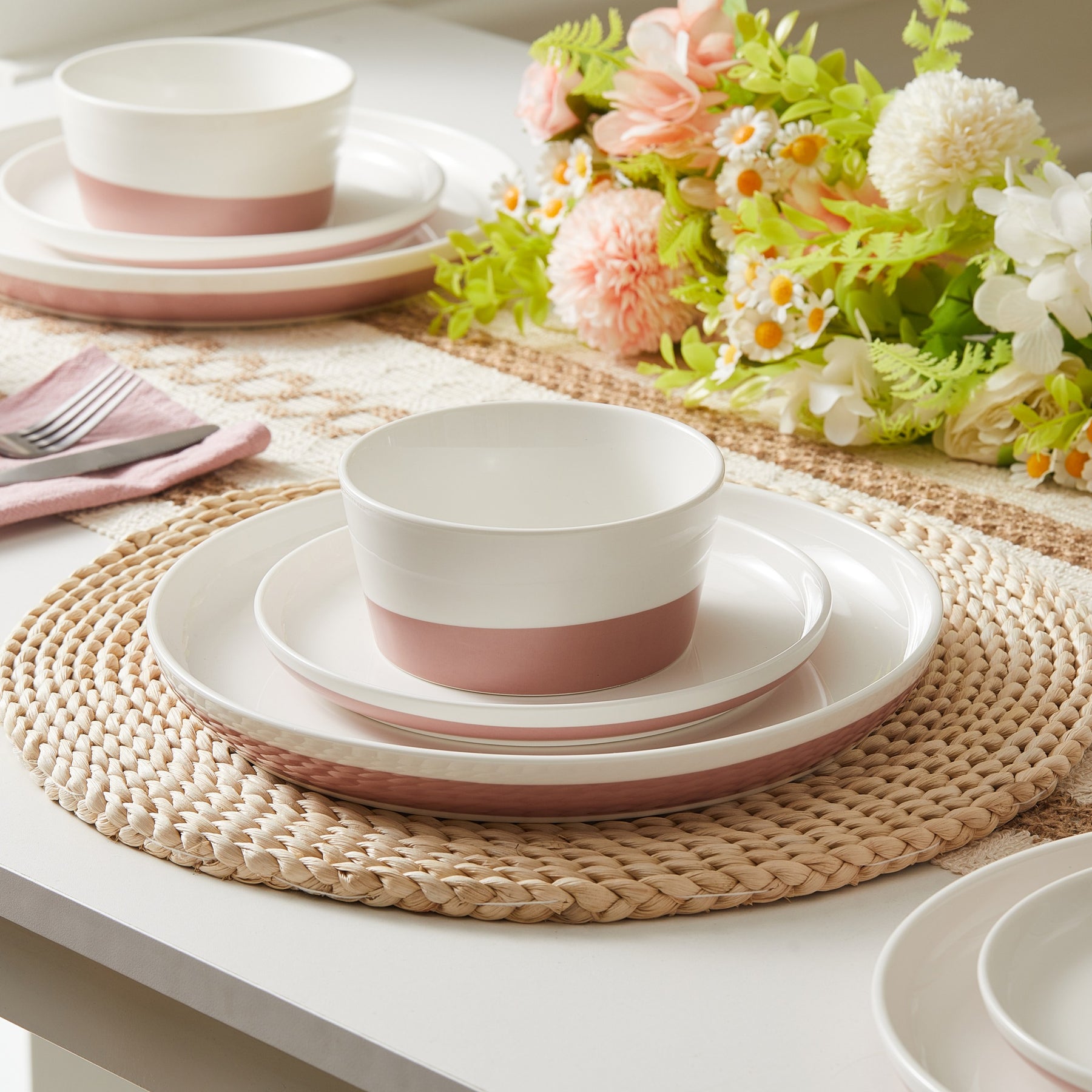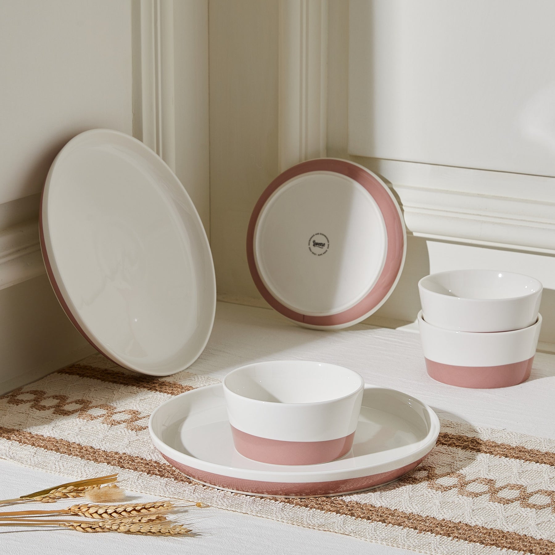 18 Pieces White & Pink Handcrafted Glaze Dishes Sets, Set for 6